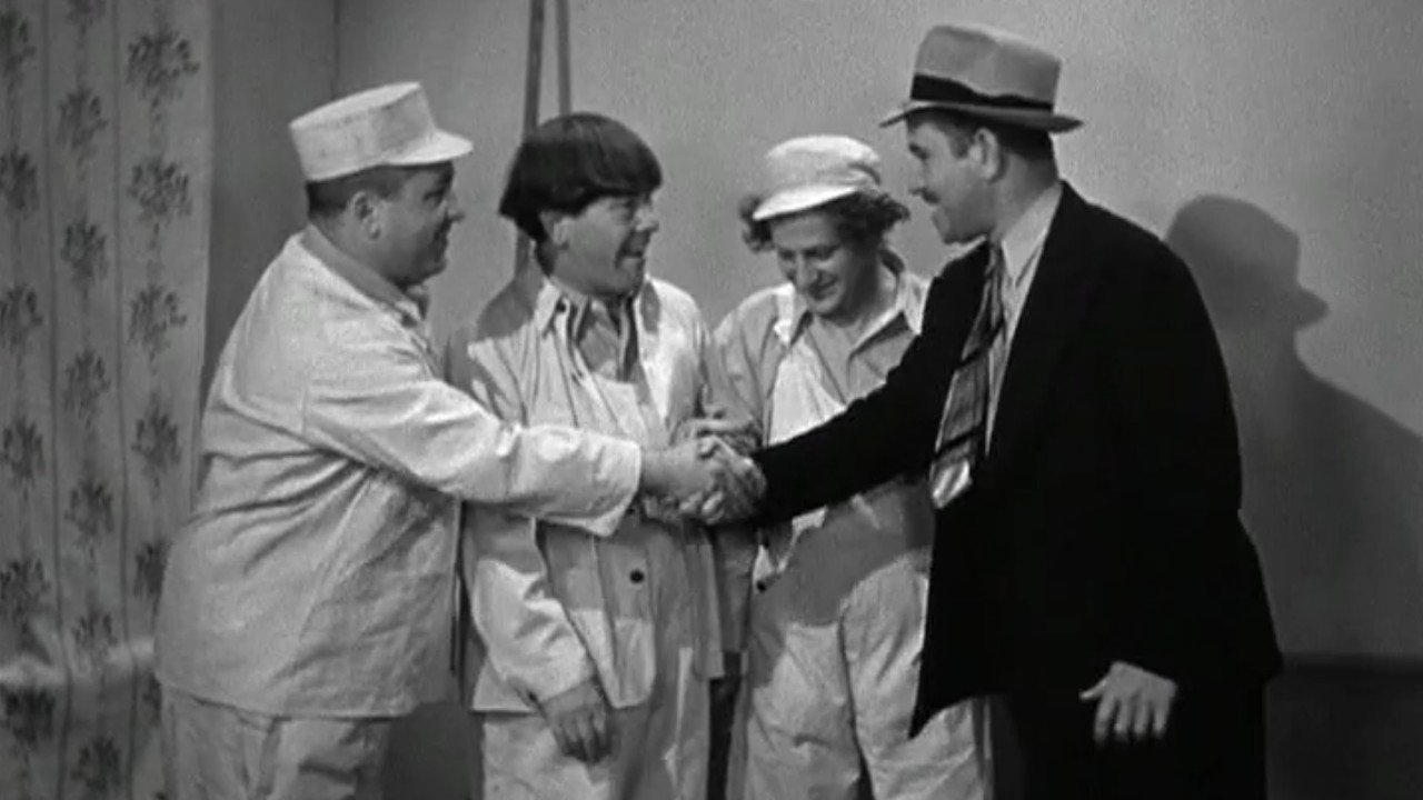 The stooge's friend Jerry convinces them to take out on insurance on Curly and then have him act insane to collect. Moe and Larry put Curly on a leash and take him to the insurance doctor and have him act like a dog. Unfortunately, the insurance doctor wants to perform a brain operation (Cerebrum decapitation). The boys try to escape by hiding in the dog catchers wagon, but are caught and taken to the hospital. They escape again, this time by rigging a sheet to a gurney and sailing down the street, where they run into Jerry and knock him into wet cement.