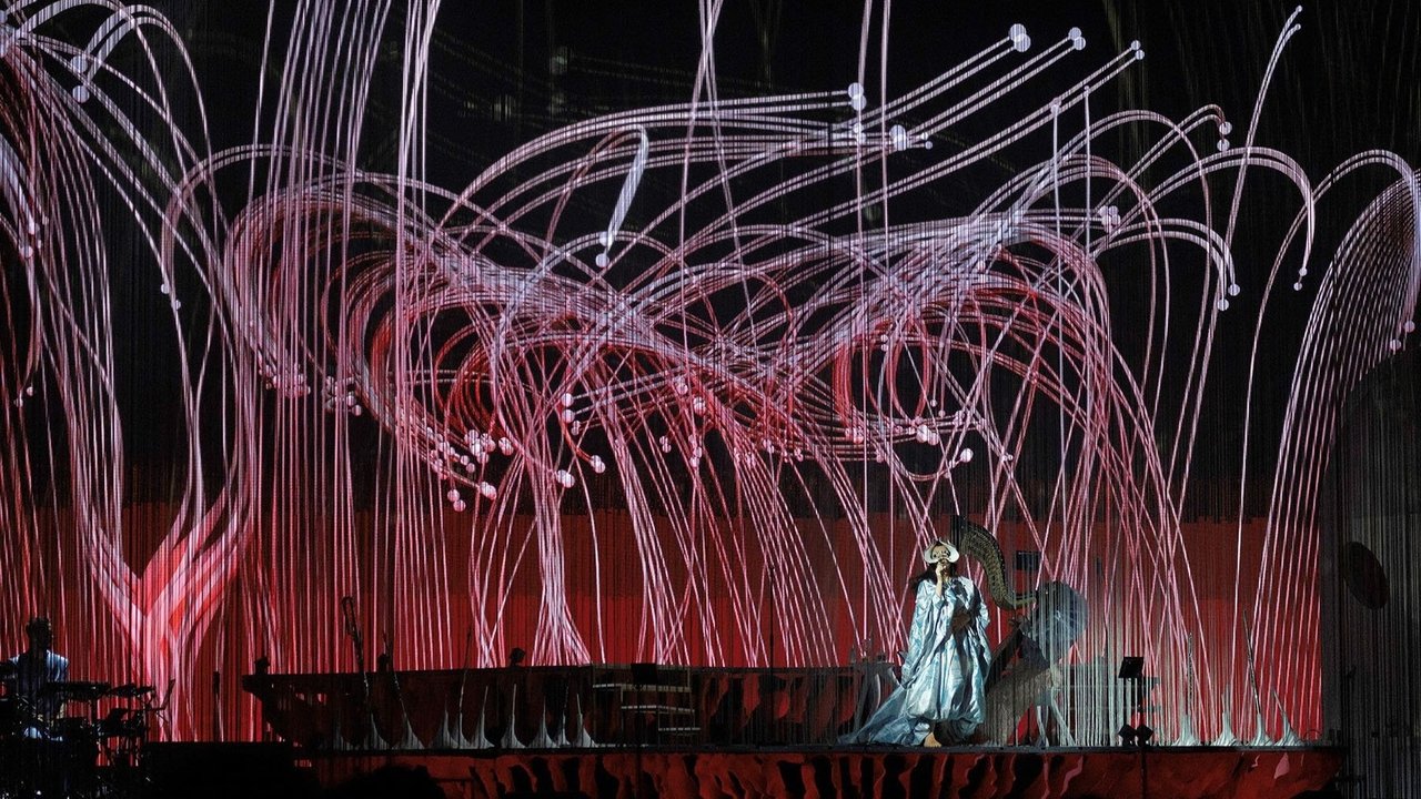 A visually spectacular landscape of lush colours, futuristic screens and wild images of nature that comes alive with Björk's wondrous music, as she performs live alongside musicians and choirs of flutes and voices.