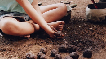 Nelma plays absorbedly in the backyard while a storm brews in the sky. Your grandmother prepares a charm to avoid the rain on the clothes to dry in the clothes line. Nelma is enchanted by her grandmother's magical abilities and wants to control the time too.