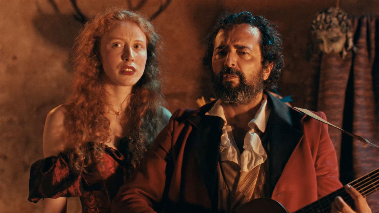 In a distant past, Léon and Elvira Berthelini, itinerant artists, make their living hopping from town to town. In Covarronca, harassed by the Police Commissioner, they are forced to spend the night out in the open. That’s when they meet Stubbs, a young Cambridge student, with whom they find shelter in the home of a painter at odds with his wife. In return for the hospitality, they remind their hosts that the love of art resolves the art of love. Meanwhile, an unusual curse sends them on absurd journeys into the 21st century, where the future of social security and of a rock band are at stake.