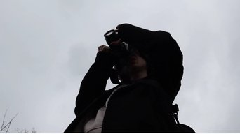 The ghost of a photographer wanders through the city, unseen by anyone.