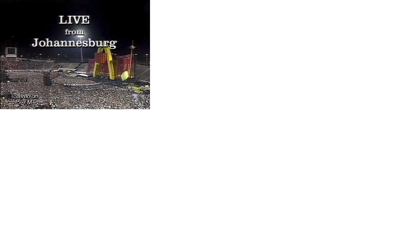Issued on DVD in 2011, this unauthorized release sees U2 perform the final shows of their groundbreaking PopMart Tour in Johannesburg, South Africa on SABC 3 (March 21, 1998). SETLIST: 01. Pop Muzik (Pop Muzic) | 02. Mofo | 03. I Will Follow | 04. Gone | 05. Even Better Then Real Thing | 06. Last Night On Earth | 07. Until The End Of The World | 08. New Year's Day | 09. Pride | 10. I Still Haven't Found What I'm Looking | 11. Stand By Me | 12. All I Want Is You | 13. Staring At The Sun | 14. Suspicious Minds | 15. Maimi | 16. Bullet The Blue Sky | 17. Please | 18. Where The Streets Have No Name | 19. Lemon (Mix) | 20. Discotheque (We Are Family) | 21. If You Wear That Velvet Dress | 22. With Or Without You | 23. Hold Me, Thrill Me, Kiss Me, Kill Me | 24. Mysterious Ways | Bonus Encore Not Included on DVD [Original Broadcast Only]: One | "40"