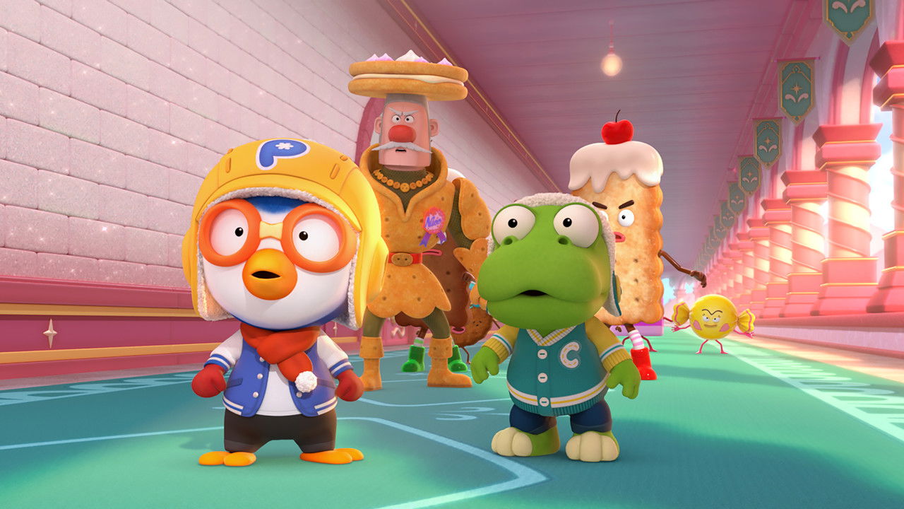 Pororo and his friends are preparing for a Christmas party when they receive a message from Santa, asking them to deliver his special toppings to the Queen of the Dessert Kingdom. On the way, the wicked witch Bunny appears and turns Poby and Petty into dolls! The others escape and find Santa—now a snowman under her curse. He pleads with them to finish the mission. At the kingdom, chaos breaks out as Count Chocoleo attacks, the group is split, and Bunny steals the toppings. Pororo and Crong chase her down, learn her true story, and decide to help. At the Cookie Kitchen, they defeat Chocoleo, complete the cookies, lift the curse, and save Christmas.