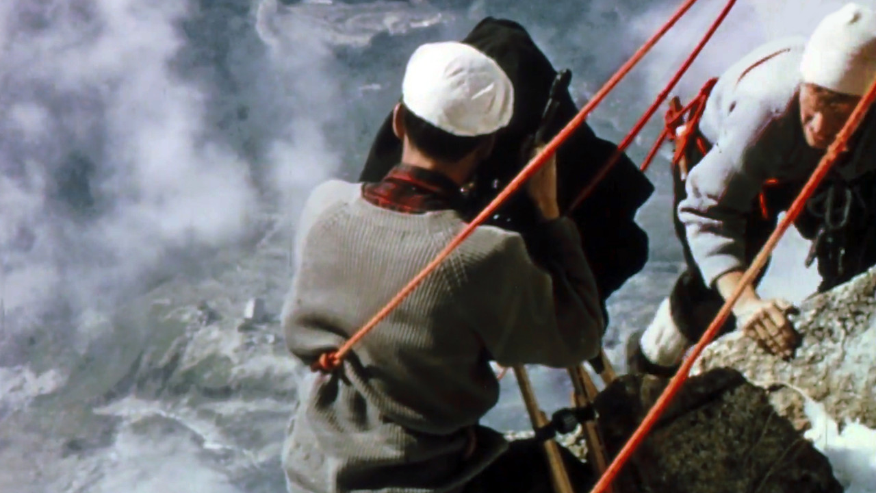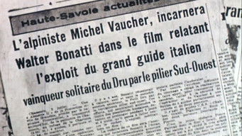 "Les Habitants des Flammes de Pierre" is the making-of documentary for the film "The Pillar of Solitude," which recounts Walter Bonatti's historic 1955 ascent of the southwest pillar of the Drus (the Bonatti Pillar) in the Mont Blanc massif, an 800-meter-high vertical face, climbed solo in six days, despite having only three. In the film, the renowned Swiss mountaineer Michel Vaucher portrays Bonatti. Unlike the film "The Pillar of Solitude," which was shot in black and white, the making-of documentary was filmed in color.