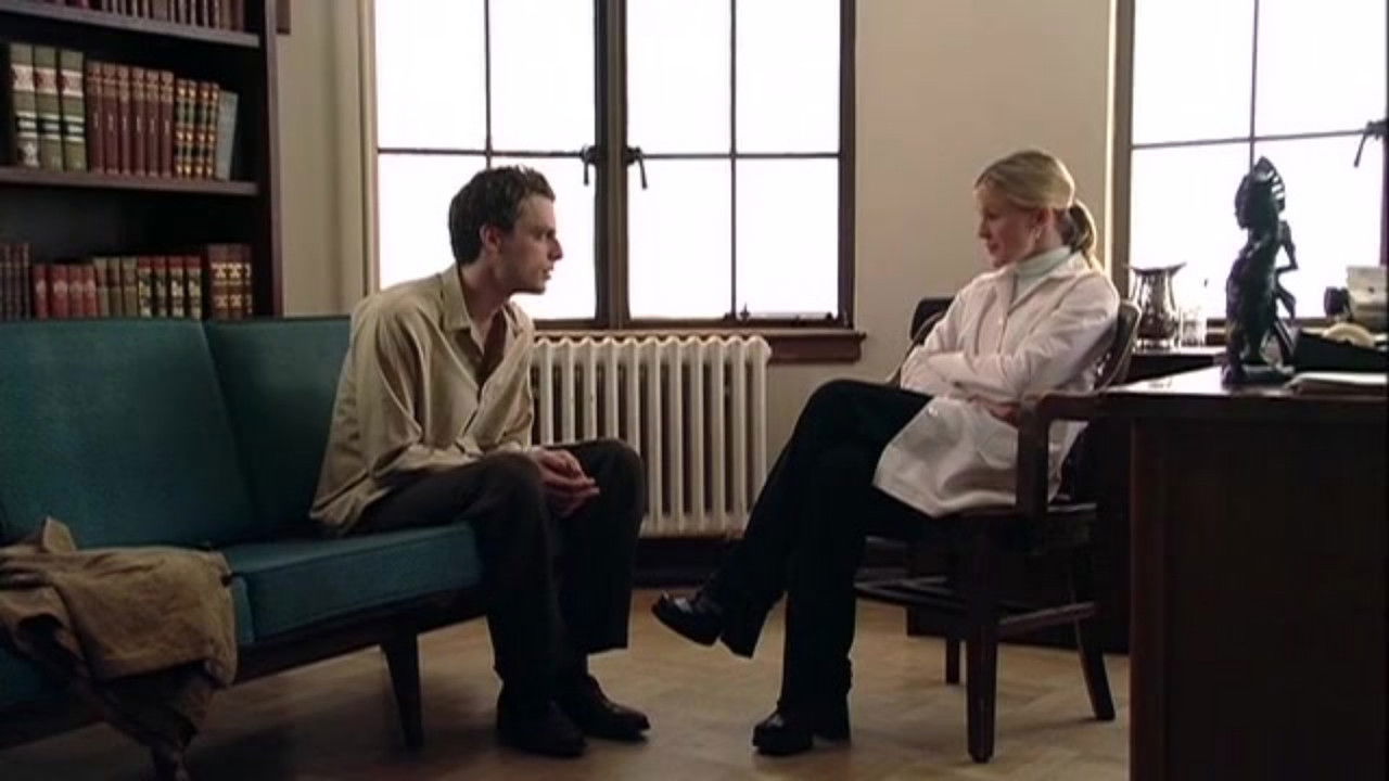 Morris has existed quietly and contentedly in a mental institution for sometime now & is distressed to find that - but for an error in paperwork - he should have been released some time ago. He would much rather stay. When his therapist is forced to ok the release, she does so knowing that his writing fantasies have disturbed her of late. However, she cannot prove Morris to be dangerous and so he is released.