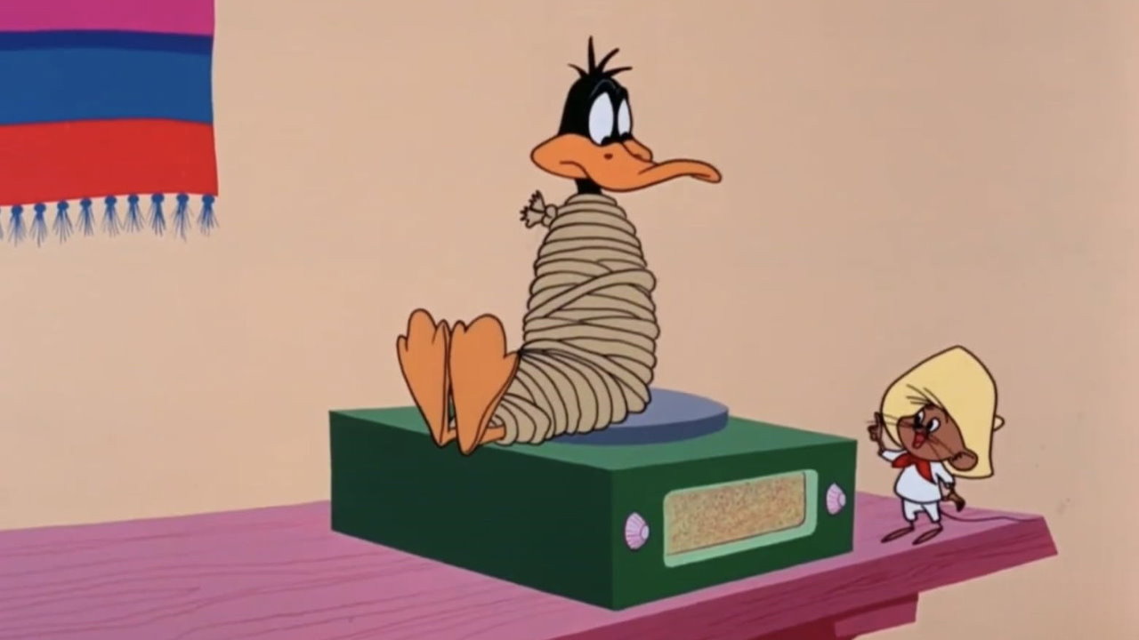 In Mexico, Daffy Duck is the owner of an electronics store where Speedy Gonzales and his friends are celebrating Speedy's birthday by playing music on Daffy's merchandise...