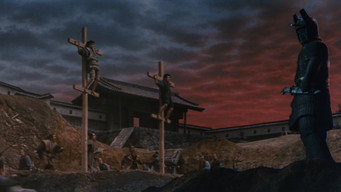 A giant stone statue comes to life to protect the residents of a small town against the depradations of an evil warlord.