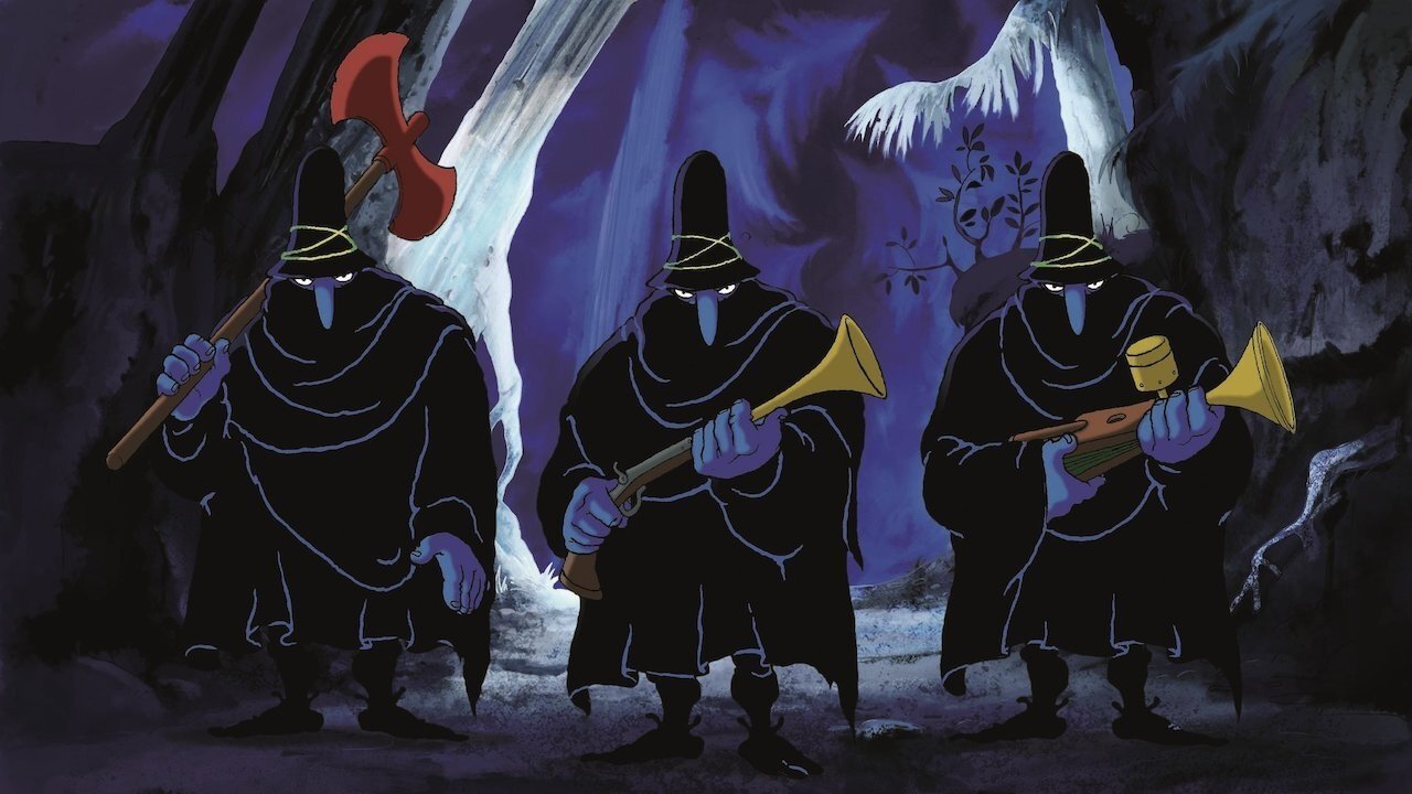 Three robbers pilfer from the countryside until they are charmed by a young orphan girl.