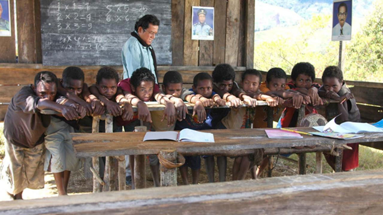 Denias lives at the foot of Jayawijaya Mountains. He goes to school in a cottage on the hill run by Pak Guru (or Teacher), who comes from Java. Pak Guru convinces Denias to continue his education because he believes that the boy is clever and could become a mathematician. Maleo the soldier also encourages Denias to go across the mountain where a good school lies. Then Denias goes on a 10-day expedition to find the school all by himself. His sleeping bag washes away in the river and he also passes out of exhaustion. Then he has to struggle to be accepted in the school as the Freeport Company that owns it, only allows children of the chiefs or the nearest tribes to be admitted.