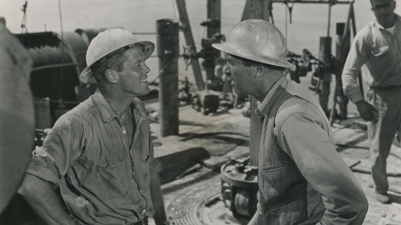 Shrimpers and oilmen clash when an ambitious wildcatter begins constructing an off-shore oilrig.