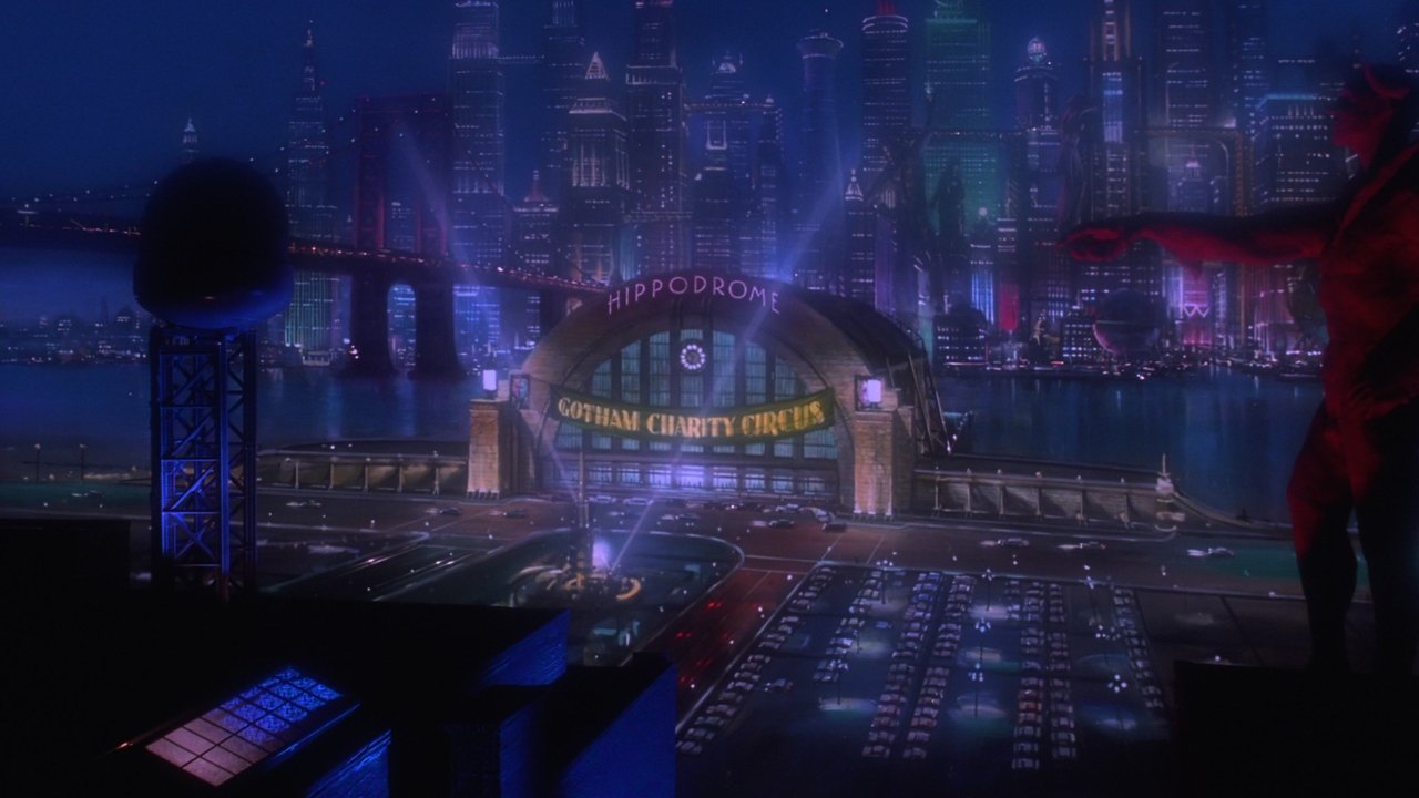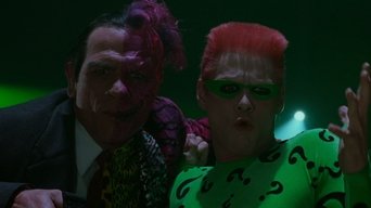 Batman faces off against two foes: the schizophrenic, horribly scarred former District Attorney Harvey Dent, aka Two-Face, and the Riddler, a disgruntled ex-Wayne Enterprises inventor seeking revenge against his former employer by unleashing his brain-sucking weapon on Gotham City's residents. As the caped crusader also copes with tortured memories of his parents' murder, he has a new romance, with psychologist Chase Meridian.