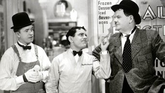 Stan and Ollie have set up their own electrical appliance store but, unfortunately for them, the grocery right next door is run by the man and wife whom they encountered in "Them Thar Hills" (1935). Stan and Ollie go and visit to offer the hand of friendship, but the grocer again becomes convinced that Ollie and his wife are fooling around.