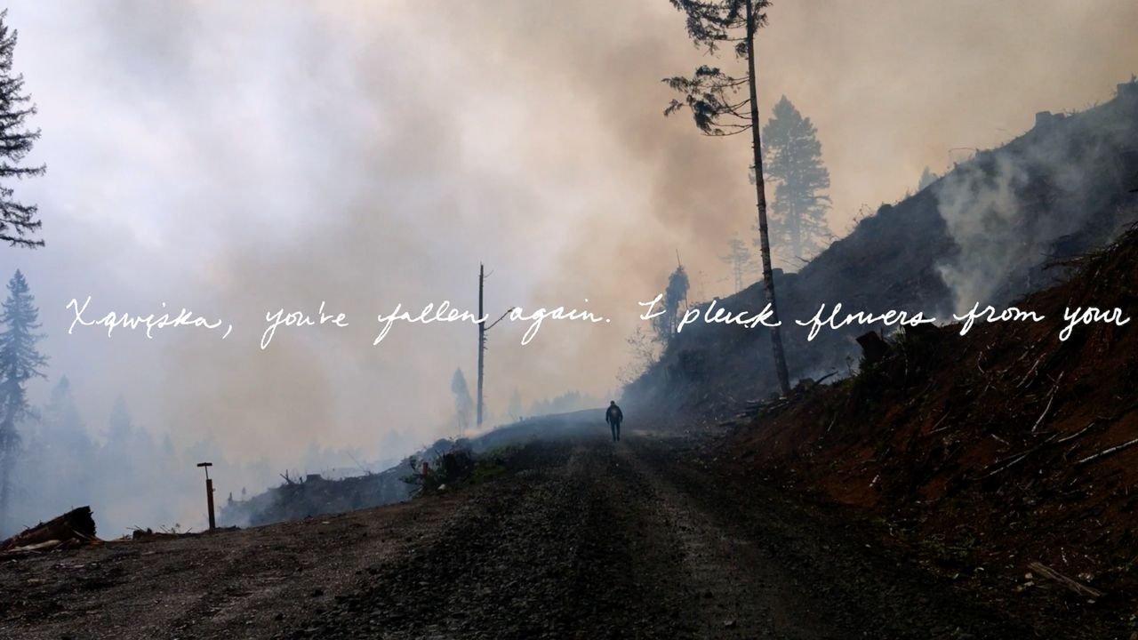 Told through recollections of youth, learning, lore, and departure, this is an imagined myth for the Xąwįska, or the Indian Pipe Plant - used by the Ho-Chunk to revive those who have fainted.