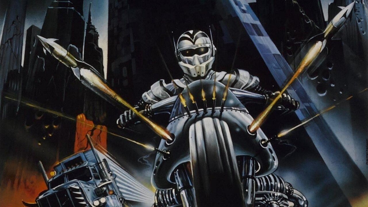 A nomad mercenary on a high-tech motorcycle helps bring about the downfall of the evil Orwellian government, the Omega.