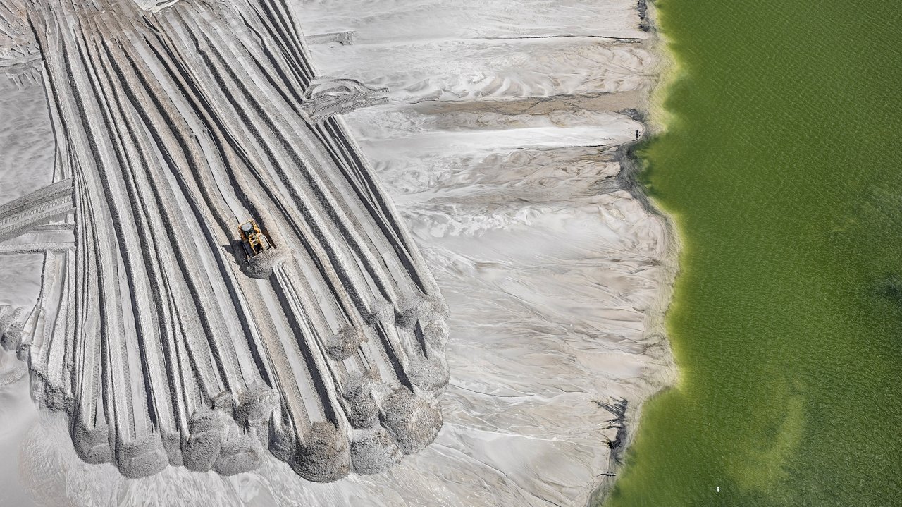 Documentary on psychedelic potash mines, expansive concrete seawalls, mammoth industrial machines, and other examples of humanity’s massive, destructive reengineering of the planet.