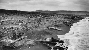 Documentary short film depicting the American assault on the Japanese-held island of Iwo Jima and the massive battle that raged on that key island in the Allied advance on Japan. Four cameramen died bringing this footage to the public