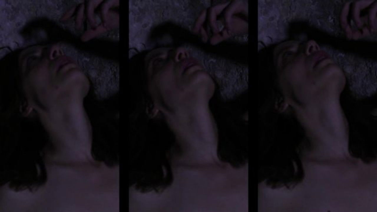 An installation presented on 11 screens featuring nude human figures engaged in cathartic performance.
