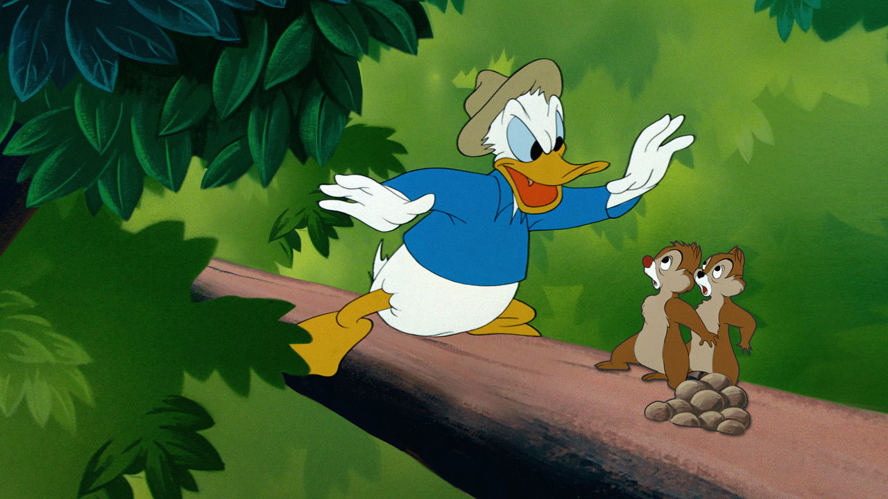 Donald's doing a little tree surgery when he spots Chip 'n' Dale gathering nuts. He saws off the branch outside their hole and paints it with tar, which Dale gets stuck in. Then Donald has a little fun with the long-handled pruning shears.