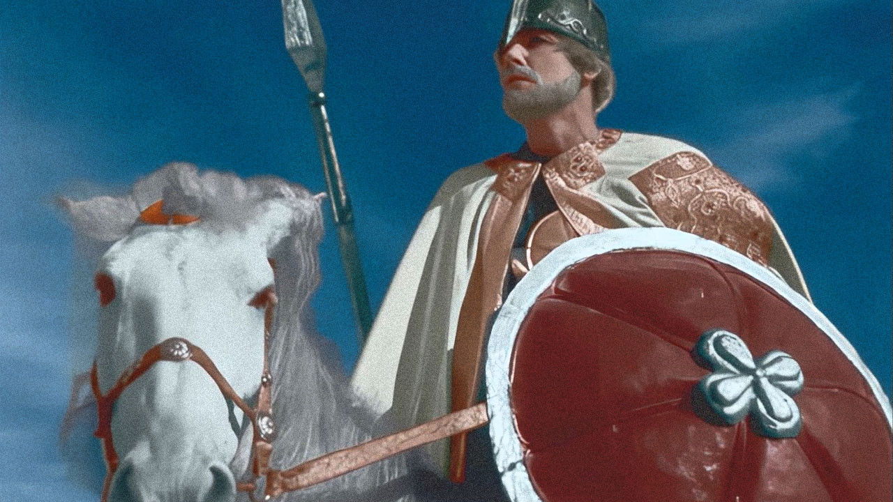 A beautiful maiden, Marya Morevna, gives her prospective husband, the mighty warrior Nikita Kozhemyaka, three riddles to solve before she'll marry him. Before he can tell her the answers, the Russian land is invaded by the armies of Kashchei the Immortal, in whose footsteps death and destruction follow. Marya is abducted by Kashchei, and Nikita finds his home in ashes. Nikita meets a kindly wizard who gives him a cap of darkness. With it, the hero will find a way to save his bride and rout Kashchei.