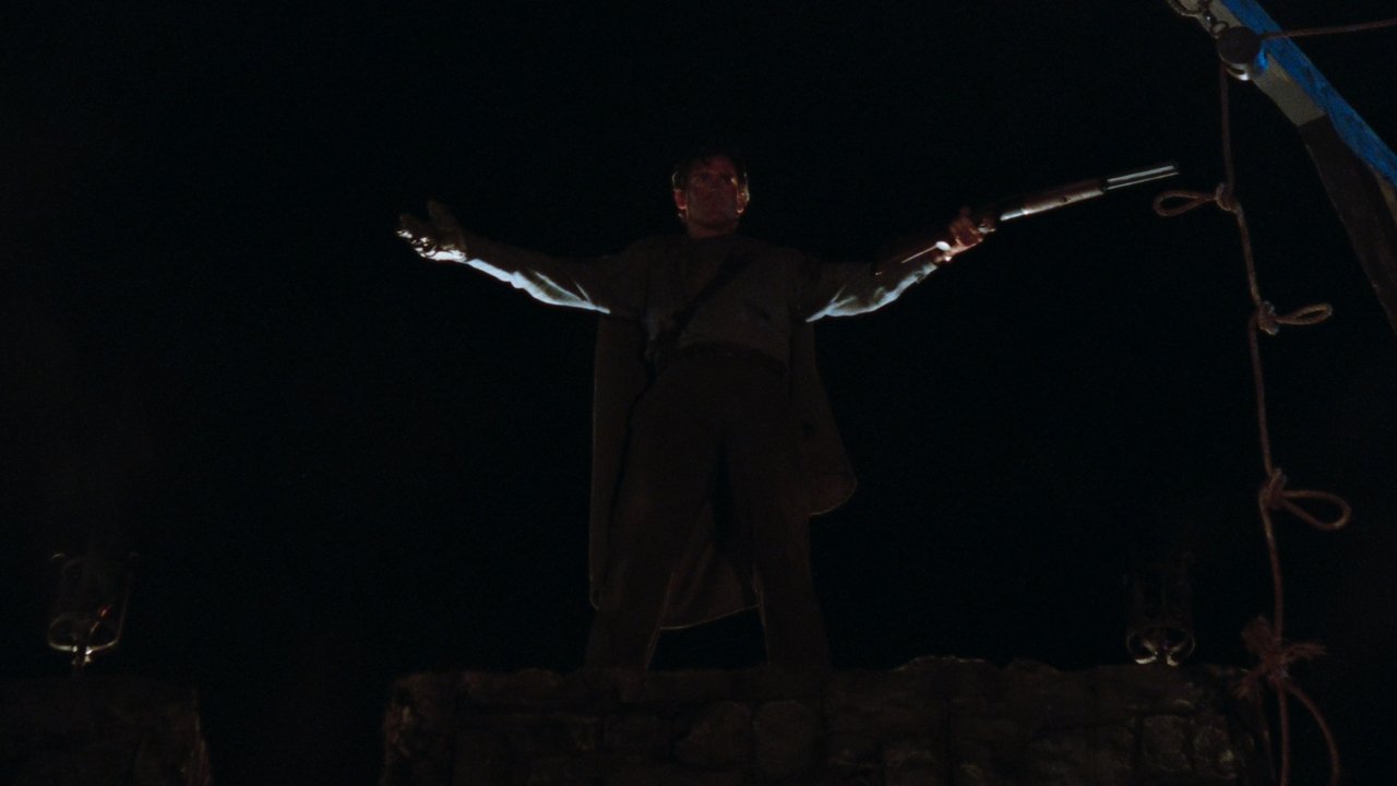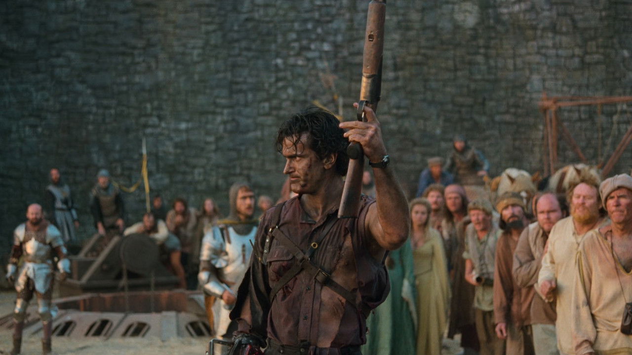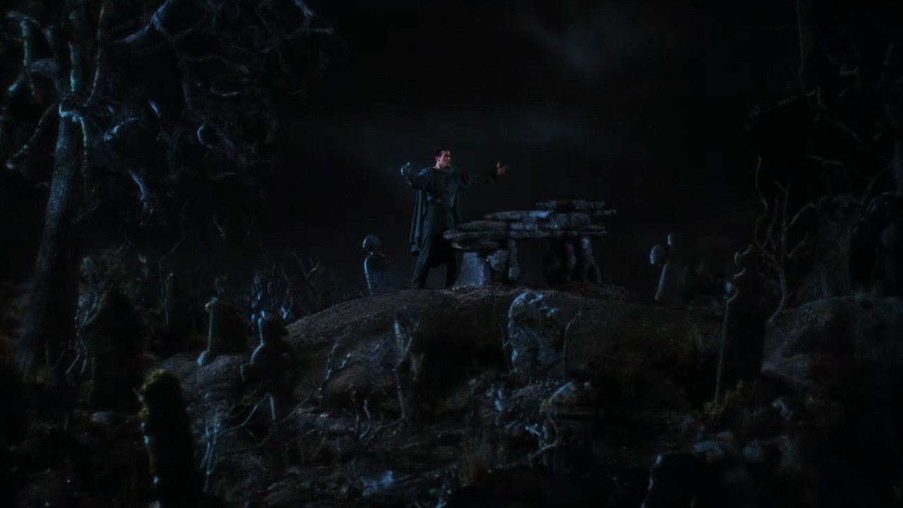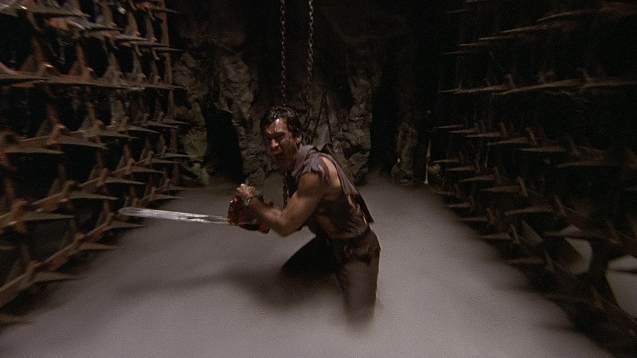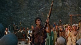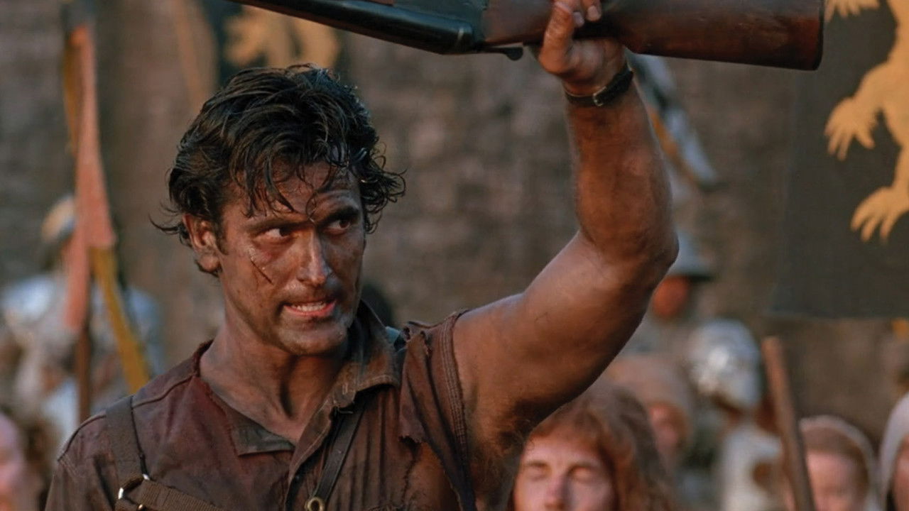 Ash, a handsome, shotgun-toting, chainsaw-armed department store clerk, is time warped backwards into England's Dark Ages, where he romances a beauty and faces legions of the undead.