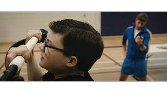A young boy attempts to get a silver medal in the most daunting of middle school tasks, the flexed arm hang.