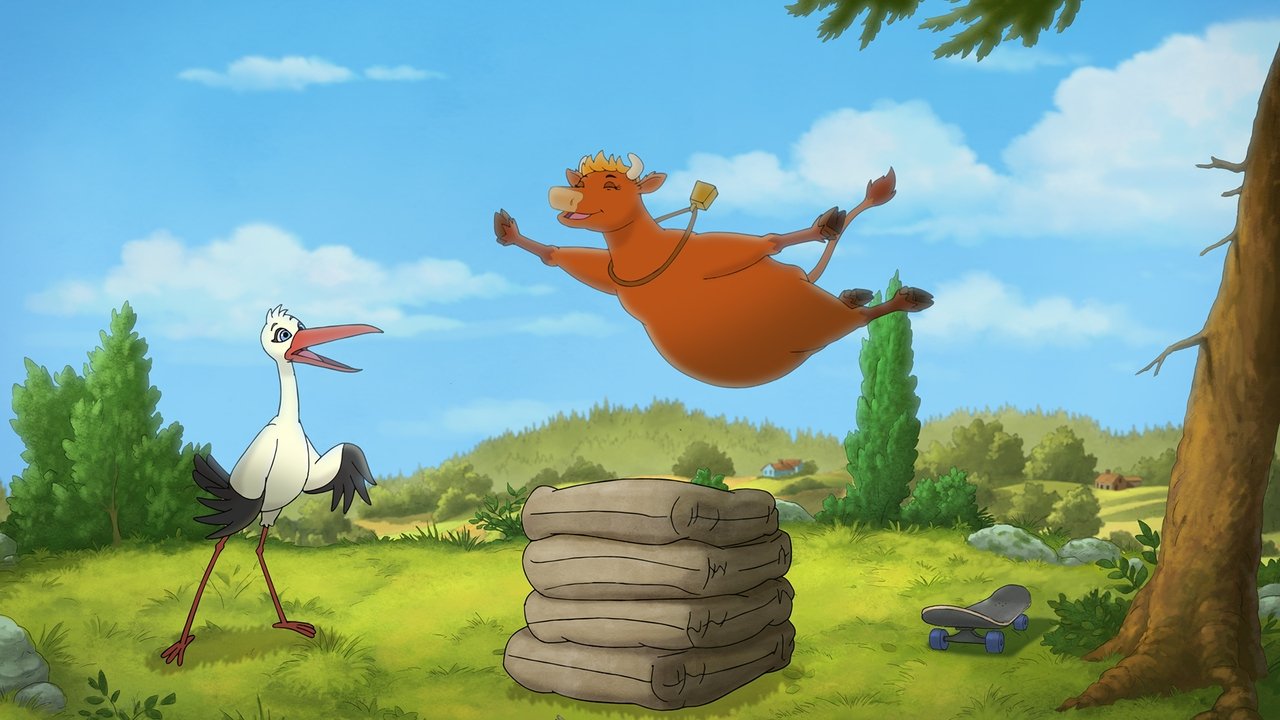 Mamma Moo wants to see the world. Crow has already seen everything. When Stork shows up at the Farm and starts building a nest, Crow is challenged by someone who actually traveled the whole world. Mamma Moo gets the feeling that there is so much more out there to see than her usual pasture, Crow tries his hardest to convince her to stay where she belongs – like a normal cow.