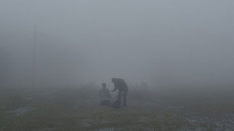 An old man and a boy exchange shots in the fog.