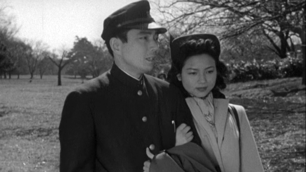 The Angry Street includes a great deal of location shooting in the rebuilt city, including downtown streets, residential neighborhoods, the campus of the University of Tokyo, and the high life of jazzy dance halls. Sudo (Hara Yasumi) and Mori (Uno Jukichi) are two university students who make money by picking up rich girls in dance clubs and conning them into giving them cash. Mori is the brains of the operation, and Sudo is the suave dancer who picks up the girls. Over the course of the film, Sudo becomes involved with three different girls and is drawn into the gangster milieu, which he seems unable to resist even though he is responsible for his mother, grandmother, and sister, Masako (Wakayama Setsuko). In this world of bad boys and girls, Masako is the pillar of strength and moral virtue who finally enables Mori to straighten out.