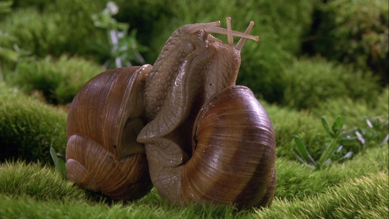 A documentary of insect life in meadows and ponds, using incredible close-ups, slow motion, and time-lapse photography. It includes bees collecting nectar, ladybugs eating mites, snails mating, spiders wrapping their catch, a scarab beetle relentlessly pushing its ball of dung uphill, endless lines of caterpillars, an underwater spider creating an air bubble to live in, and a mosquito hatching.