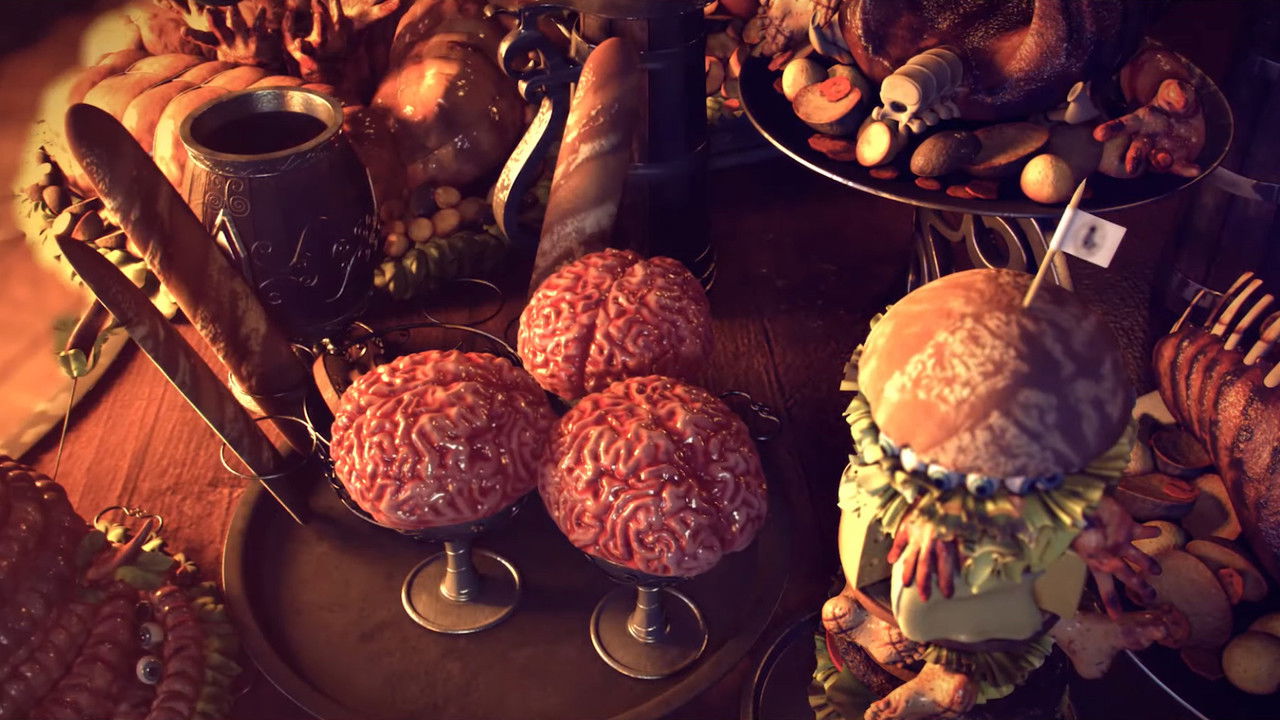 Four ogres meet in a restaurant, run by trolls, where they are accustomed to having a feast.