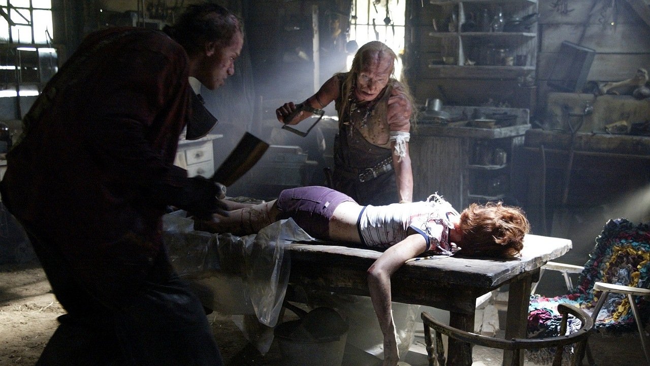 Chris crashes into a carload of other young people, and the group of stranded motorists is soon lost in the woods of West Virginia, where they're hunted by three cannibalistic mountain men who are grossly disfigured by generations of inbreeding.